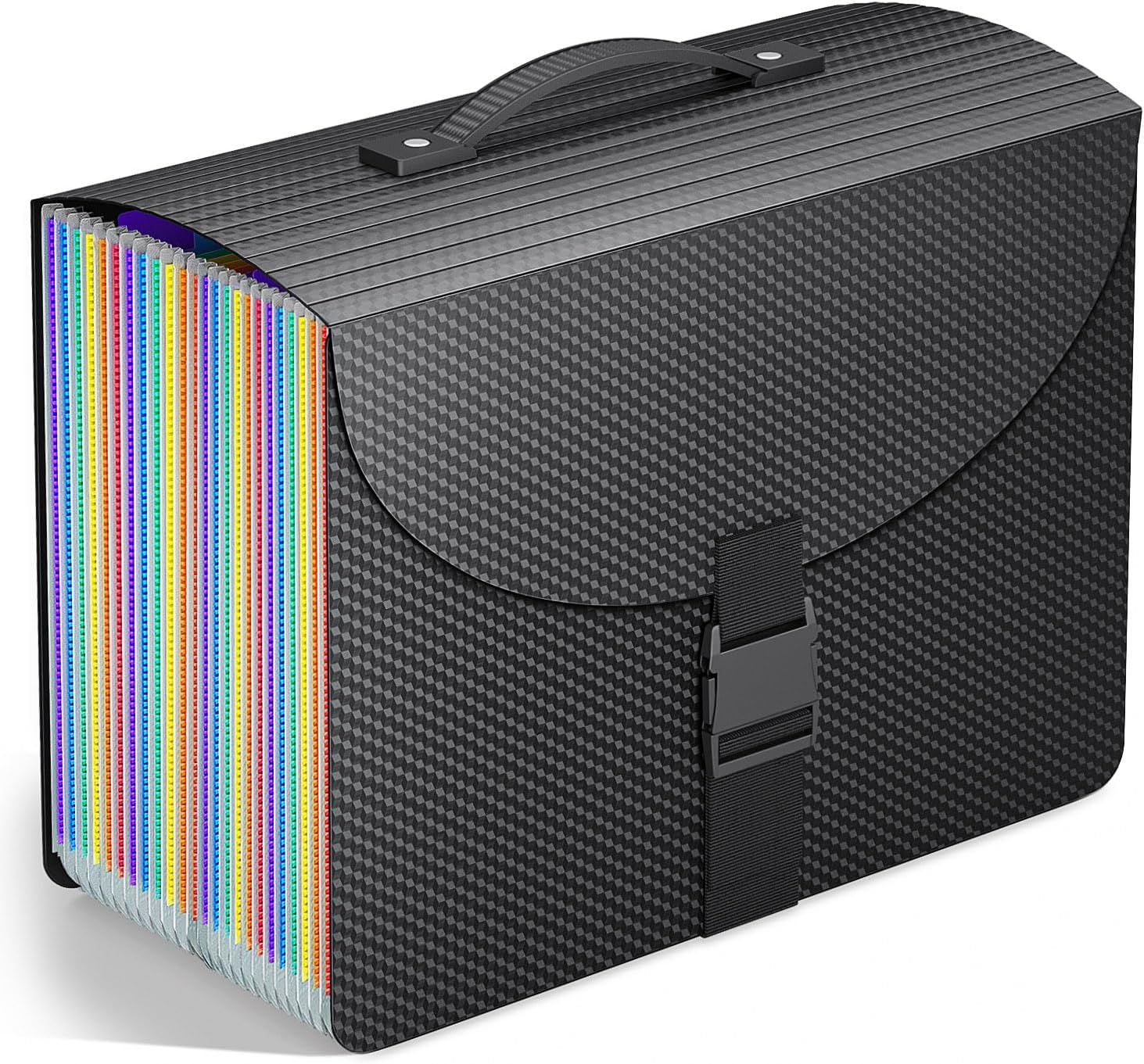 25 Pockets Expanding File Folders,Accordion File Organizer with Handle,Portable Filing Box,Expandable File Folder,Adjustable Support Strap,Colored Tabs.Papers Bills Documents Organizer,A4/Letter Size