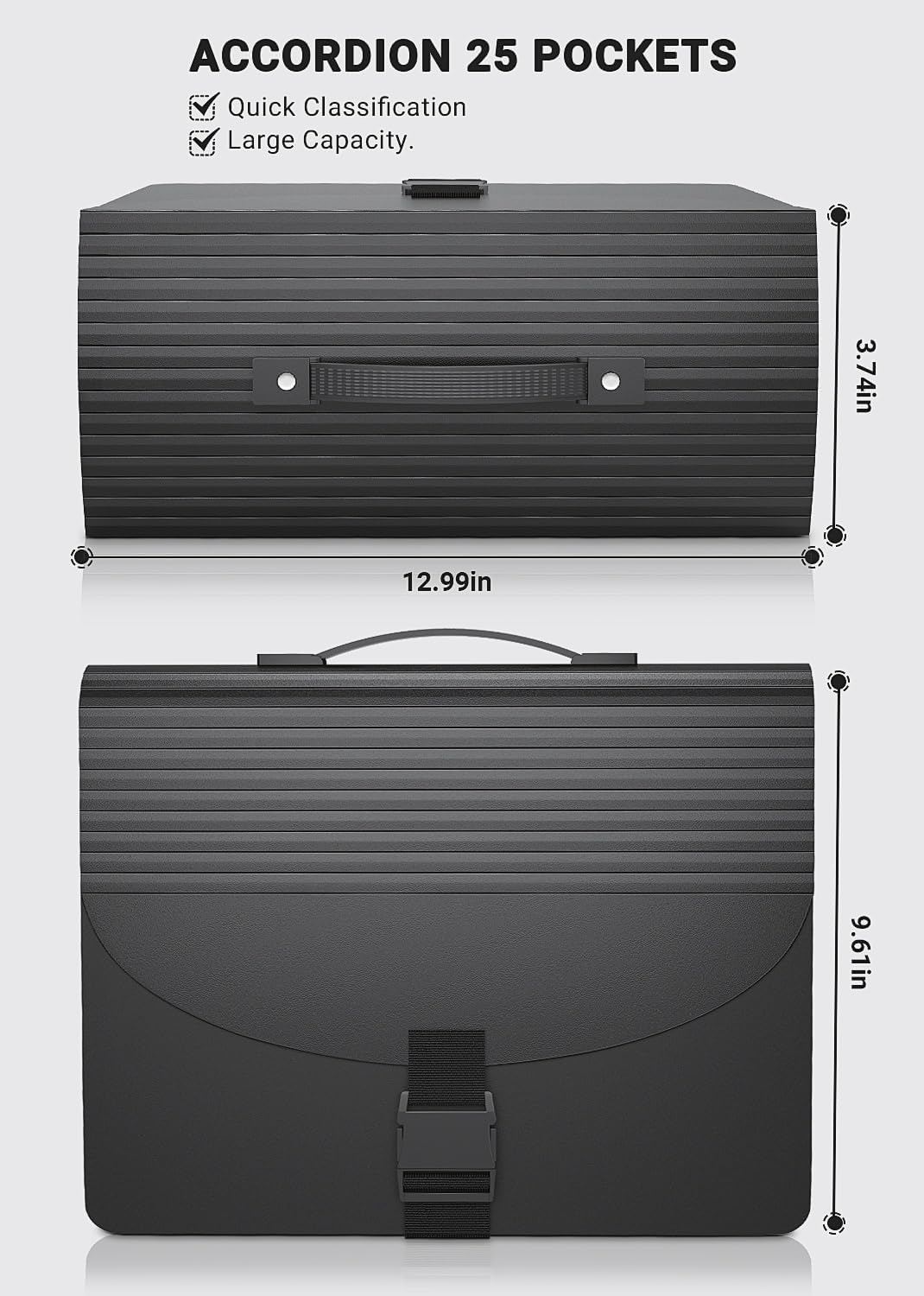 - ✔【HIGH CLASS】 Durable Plastic Handle, the lid is connected to the bottom by a beautiful adjustable buckle,make the folder instantly looks more fashion,when you hold a good amount of documents into file folders,easily take away all important documents anywhere and the buckle is perfect to protect the safety of files,successfully upgraded from traditional accordion file organizer.