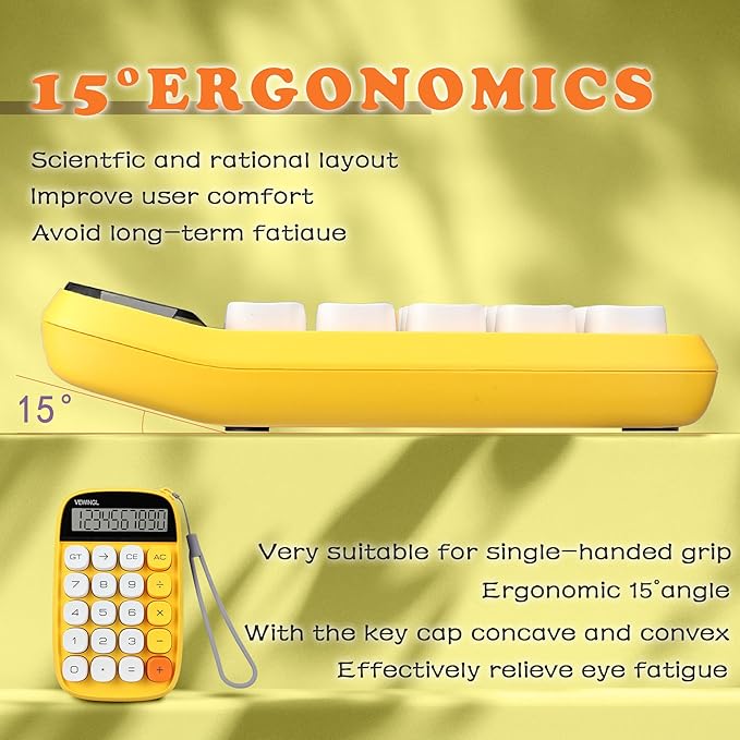 - 🔢 CLEAR DISPLAY & PRACTICAL FEATURES: Equipped with a 10-digit LCD screen set at a 15° ergonomic angle for better visibility and comfort. Ideal for basic math functions, suitable for both adults and students.