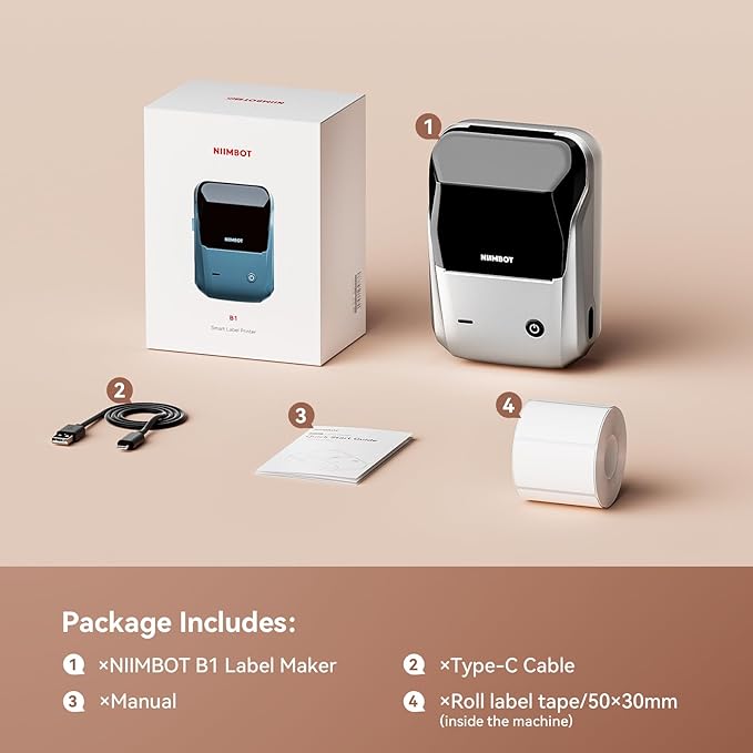 NIIMBOT B1 Label Maker Machine with Tape, 2 Inch Portable Sticker Printer for Home School & Small Business, Compatible with Phones & PC, Silver Gray