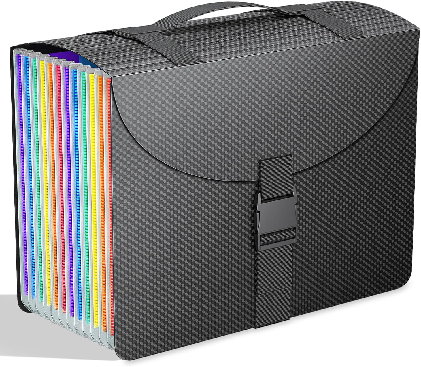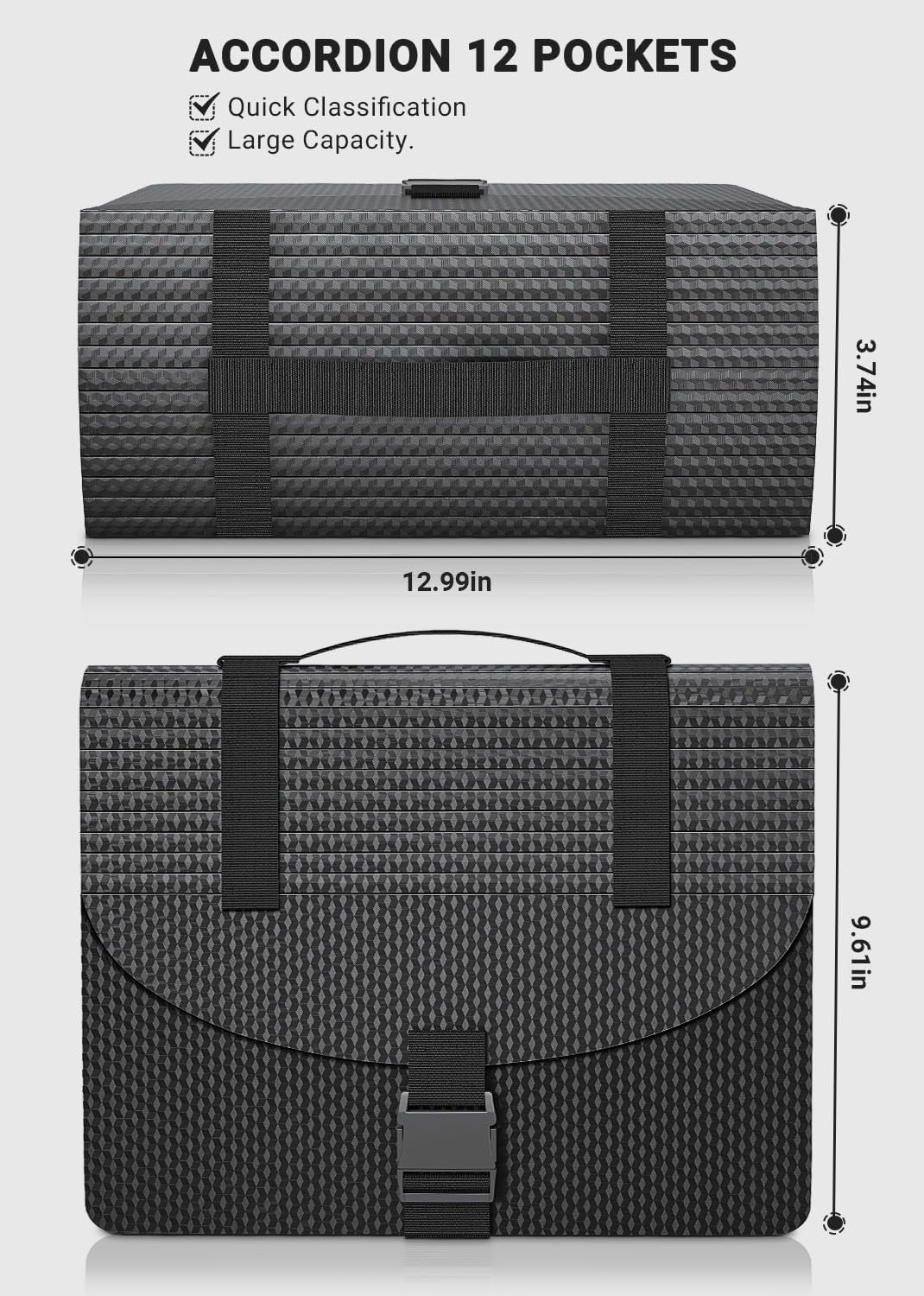 - ✔【SUPERIORITY】This innovative file organizer,designed with a durable handle and a fashion buckle, successfully upgraded from traditional expanding file folders. More easily take away all important documents any time and anywhere when hold a good amount of documents, the buckle is very good to protect the safety of files.