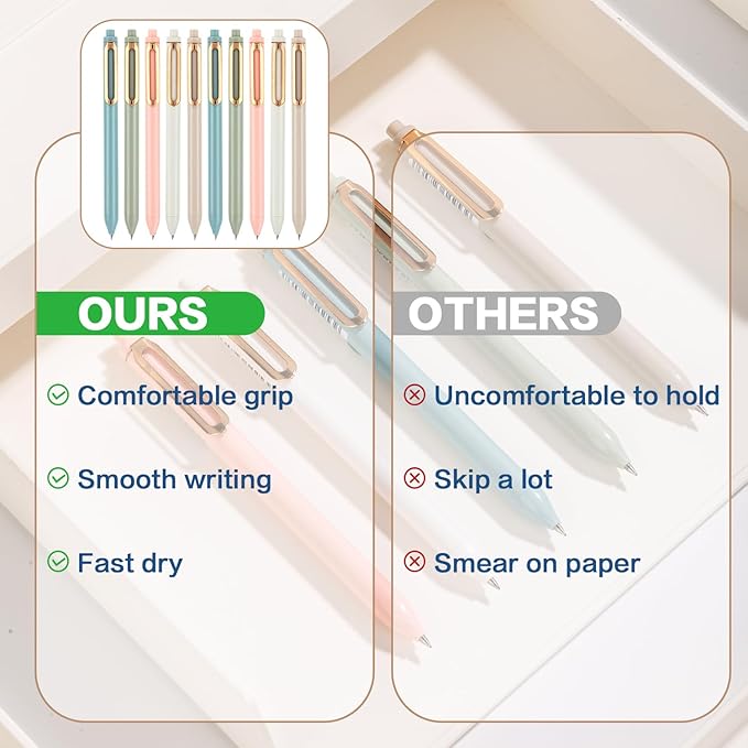 - 【COMFORTABLE TO GRIP】Ergonomically designed for comfortable grip and effortless writing. Provides a pleasurable writing experience