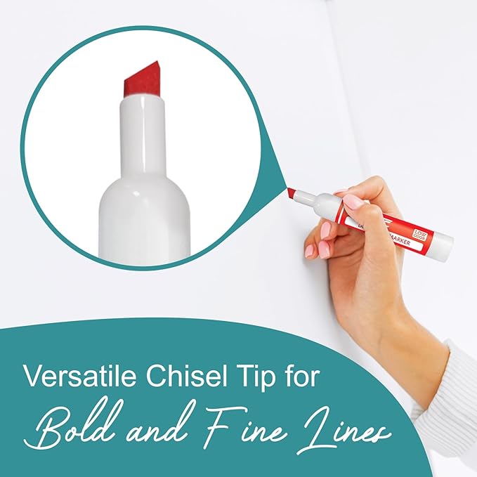 - Versatile Chisel Tip writes bold and thin lines. Dry erase markers chisel tip vivid color is highly visible even from a far distance.