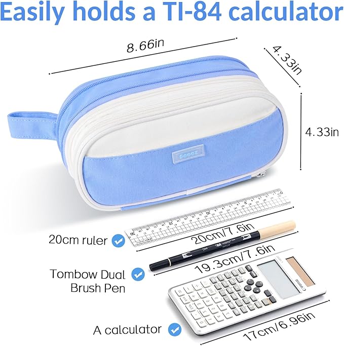 - Expanded Functionality Upgrade: The pencil case can double its capacity when fully expanded, offering 1.5 times more space than common expandable pencil cases in the market. You can easily adjust its size to accommodate the number of items you need to carry. Fully expanded dimensions: 8.66 x 4.33 x 2.56 inches; Unexpanded dimensions: 8.66 x 4.33 x 1.2 inches.