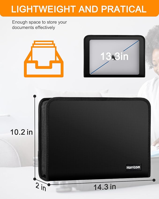 Hontom Accordion File Organizer,13 Pockets Fireproof Document Organizer with Multicolored Pockets, Business Safe Storage Folder Zipper for Documents and F61NCYXEFF02V