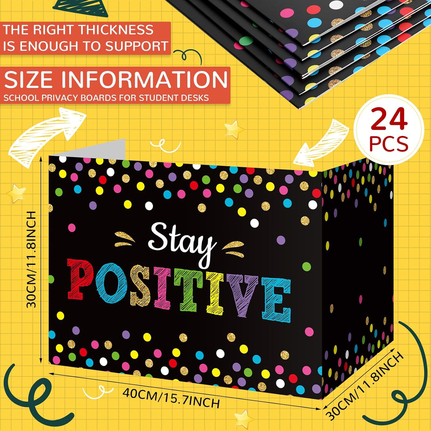 Honoson 24 Pcs Bulk Inspirational Privacy Folders for Students Cardboard Test Privacy Boards Motivational Words Desk Dividers Shield for Classroom School Study Supplies, 6 Styles(Motivational)