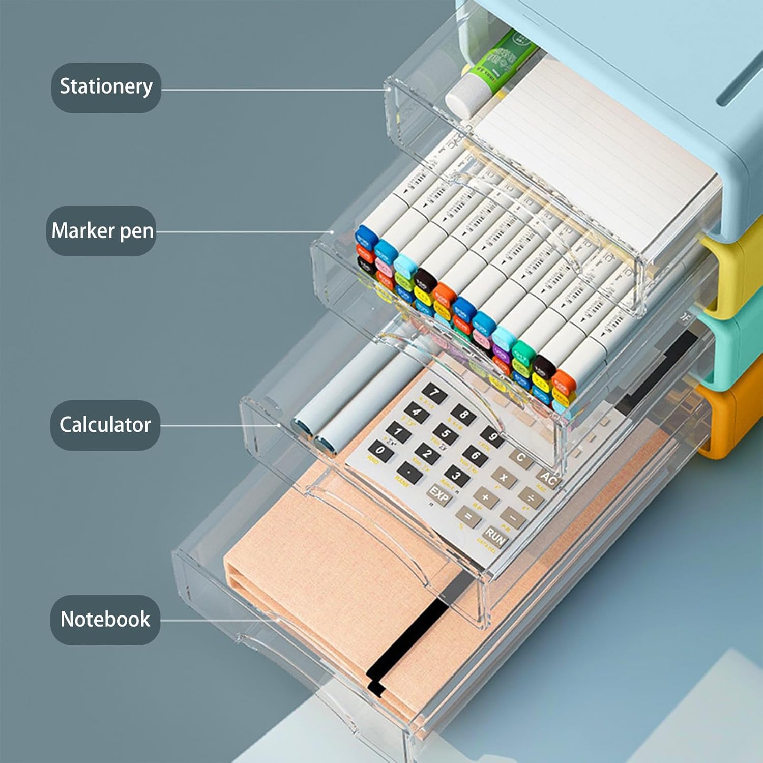 Desk Organizer with Drawers, Stackable Storage Drawers with Compartments Desktop Organization for Office Supplies, Makeup, Pencils, Tape, Erasers, Paperclips, Chargers (4 Pack)