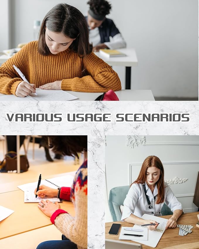 - Precision Fine Point & Universal Suitability:Featuring a 0.5mm black ink rollerball, our gel pens provide precision and clarity.with a small metal ball on the clip, our pen leaves smaller marks compared to others, catering to fidgeters while embracing aesthetics.the black, white, and gray color scheme allows for versatile use in various settings.ideal for nurse essentials, healthcare professionals, students, and office workers