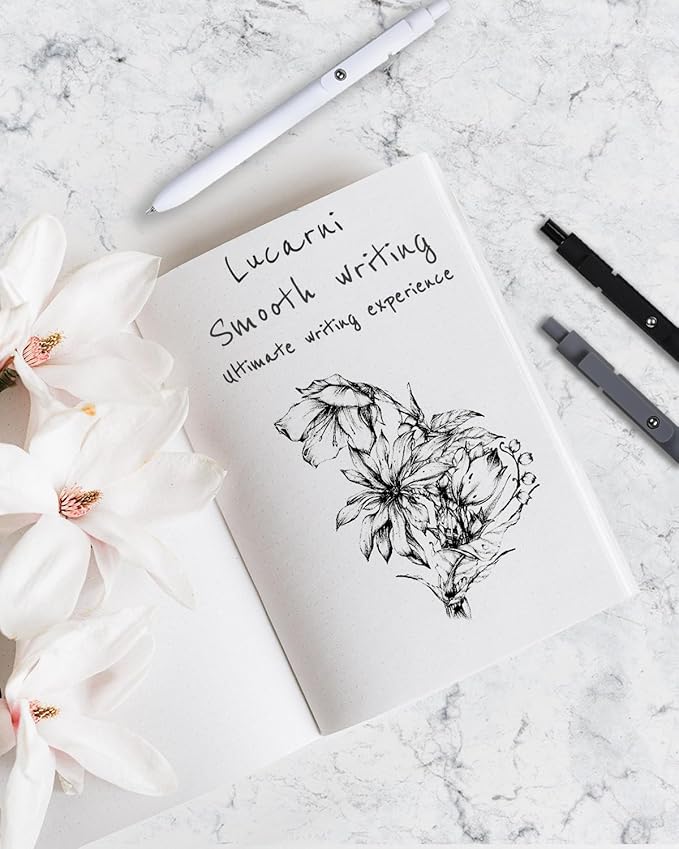- Quick-Drying & Mess-Free:Elevate your writing experience with Lucarni's fine point gel pens featuring Quick Dry Technology. Redefining the standard for both office and school supplies, these stylish yet functional pens ensure a clean and smooth writing experience with no smudges, leaks, or blobs