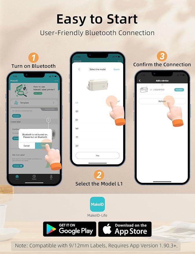 - Design Your Labels: The Bluetooth label printer connects wirelessly to compatible Android or iOS phones. Just download the free app and make personalized labels for your home office and office organization needs!