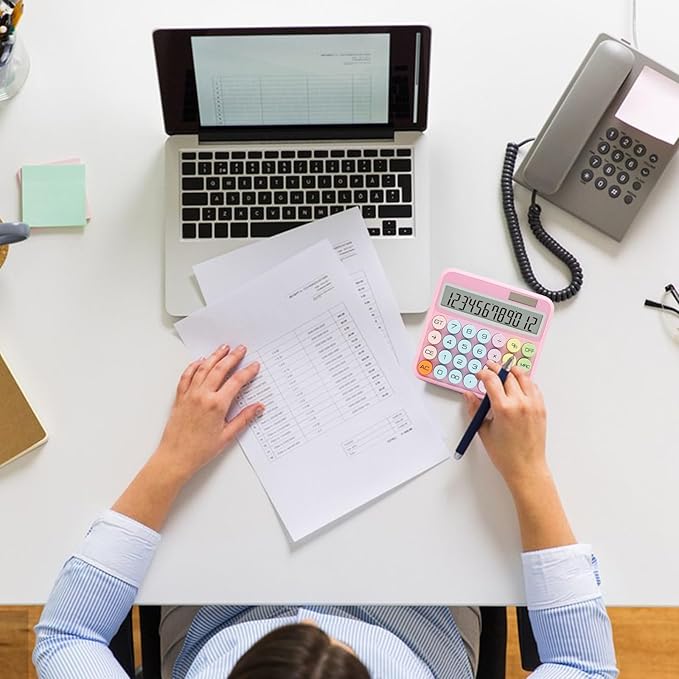 Pink Calculator, Standard Calculator 12 Digit with Large LCD Display and Big Buttons,Pink Office Accessories for Women Desk,Cute Calculator for Office,School, Home,Business(Colorful Pink)