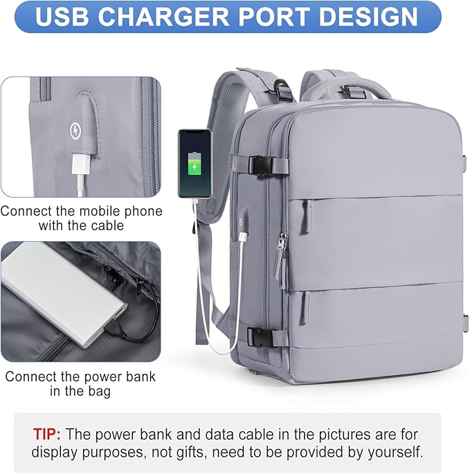 - 【USB Charging Port】 Carry on luggage backpack has a USB charging cable inside, just connect your own charging treasure, outside the backpack and then prepare the charging cable belonging to your device, you can complete the charging of cell phone or lpad, realize the free switching of charging of multi-device, but also can be charging while you are walking, won't be because of no power and lead to miss the important information.