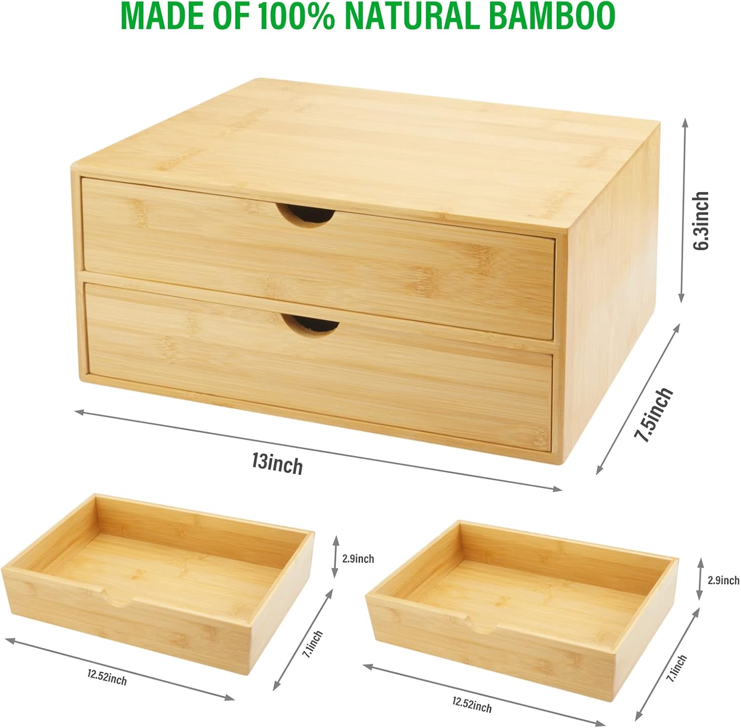 Bamboo Desk Organizer with Drawers, Countertop Organizer with Drawers Makeup Storage Drawer 2 Drawers Tabletop Storage Organization Box Home Office Workspace Bathroom Toiletries Supplies
