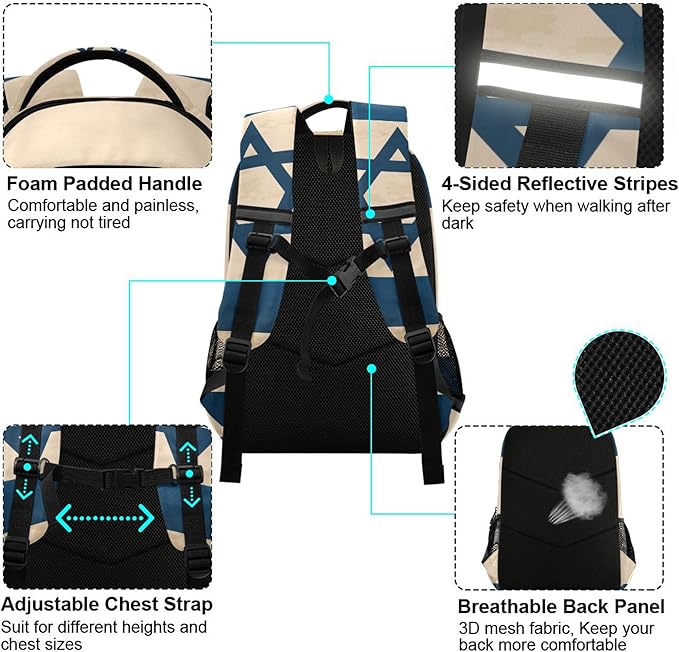 Retro Flag Israel Backpack for Girls Kids Boys School Bookbags, Student Laptop Backpack Carrying Bag Casual Lightweight Travel Sports Day Packs