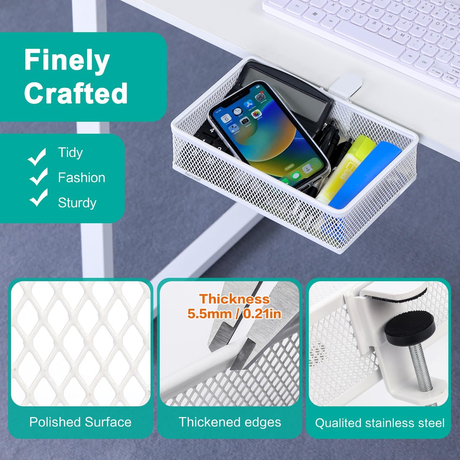 Under Desk Drawer Organizer - Clamp-On Above or Below Desk Mesh Drawer for Office Accessories, Storage Tray, and Desktop Organizer (White - Small)