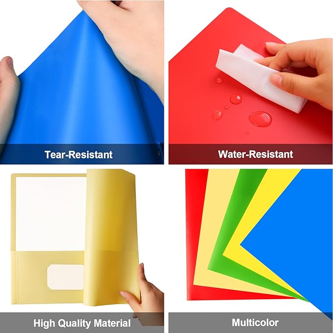 - 【PLASTIC FILE FOLDER】Crafted from high-quality, durable plastic, these pocket folders 8.5 x 11 are built to last long. The plastic file folders multiple colors adds a touch of elegance to your filing system, and also have good durability and water resistance.