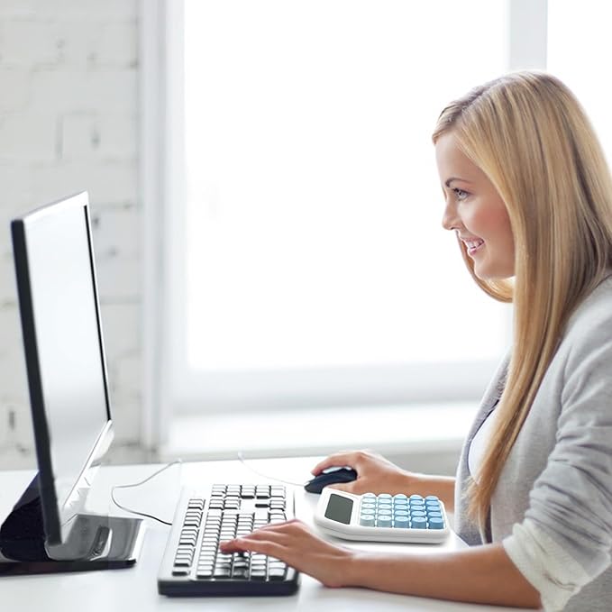 - Energy Efficient Use - The basic Blue calculator display is designed with a 15°tilt screen for optimum field of view and stability. It is convenient and comfortable to calculate and read. It will automatically shut down after 10 minutes without any operation, saving energy and electricity.