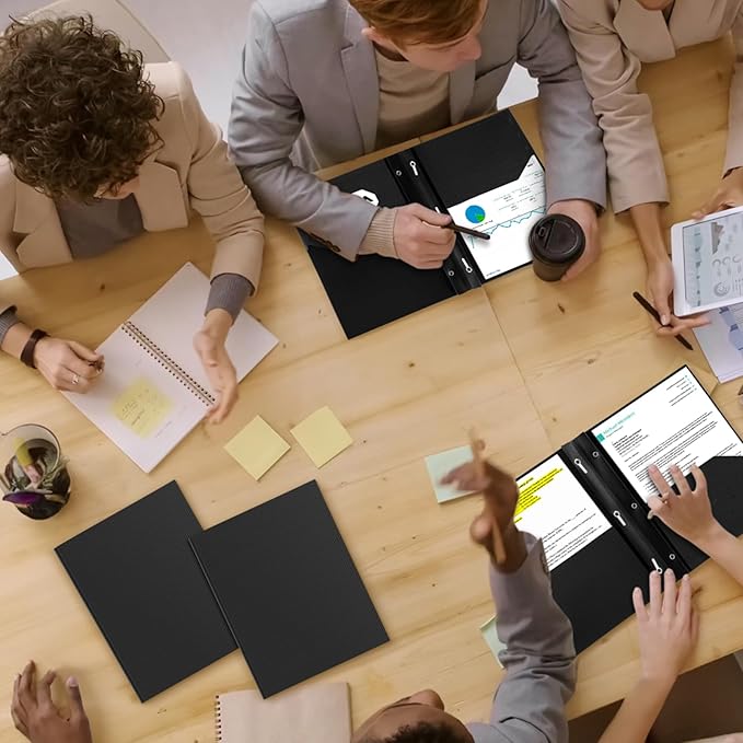 - 3 prong fastener punched documented to be secured inside the folder effortlessly and efficiently.