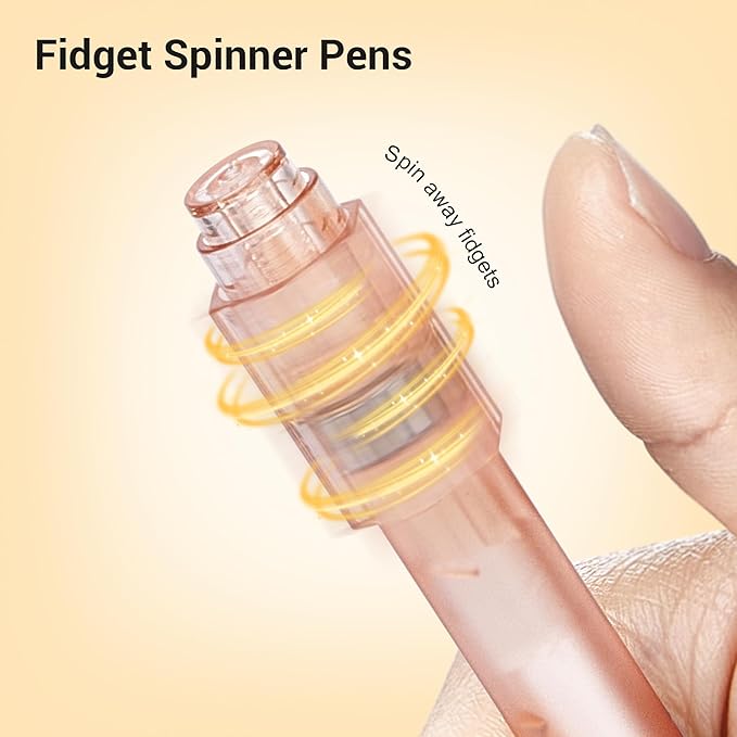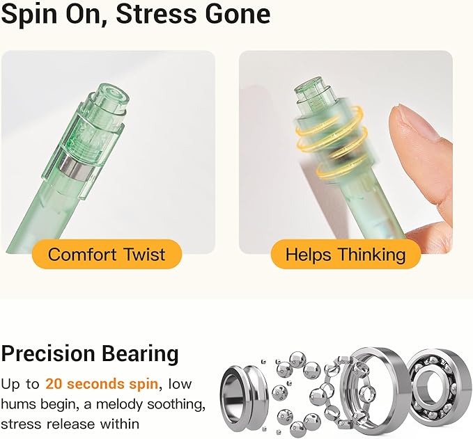 - Stress-Relieving Design: Experience the calming effect of our fidget spinner pen, perfect for school or office stress relief. Enjoy the smooth spin feature designed for men and women alike, making it an ideal gift that combines fun and functionality. The spinner incorporates a precision bearing system that allows for up to 20 seconds of spin time, creating a low humming sound that can be soothing, and thus helping in stress relief.
