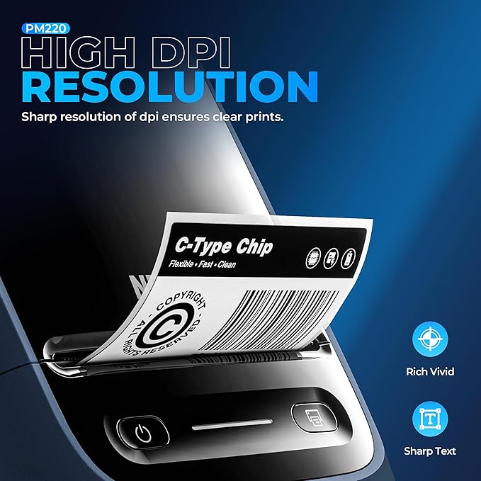 - Portable- PM220 label maker machine with tape compatible with smartphone & PC. Easily connect label printer to your smartphone in just 5 seconds for fast and convenient printing, label printer achieves convenient, smooth & fasts printing. Mini compact design, you can bring this portable label maker machine with tape to anywhere.(Note: charging adapter not included, not suitable for fast charging adapter.)