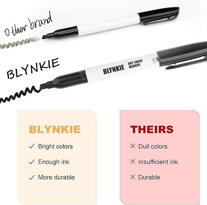 - ✍️Tips!:Don't worry if the dry erase makers you just received is poorly written or a little dry. Please close the cap and leave the cap facing down for 1-2 days.Your markers will write very smoothy.