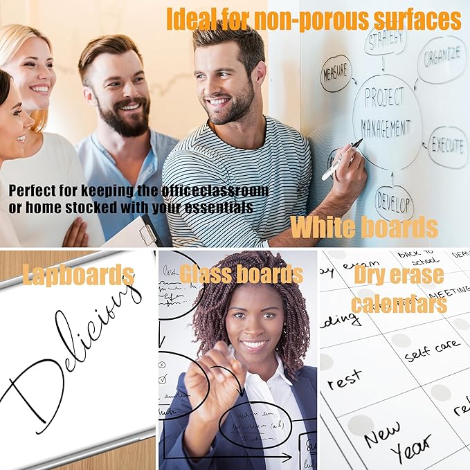- ✍️Easy to Use:Writing smoothly and drying quickly with washable ink can easily wiped off from whiteboards(not for blackboards/chalkboards), glass, mirror, and most non-porous surfaces with any cloth or eraser.Perfect for use in classroom, office, home and studio.