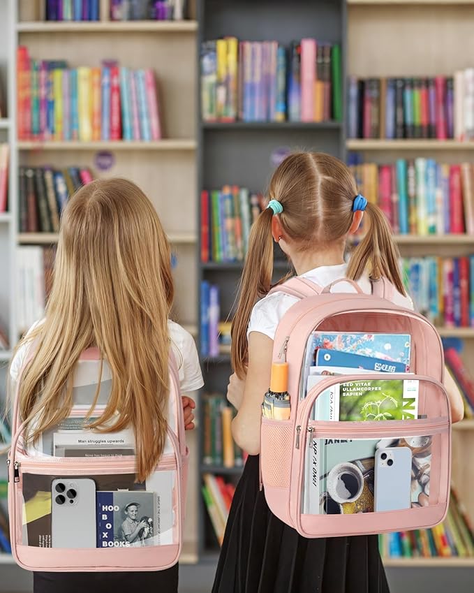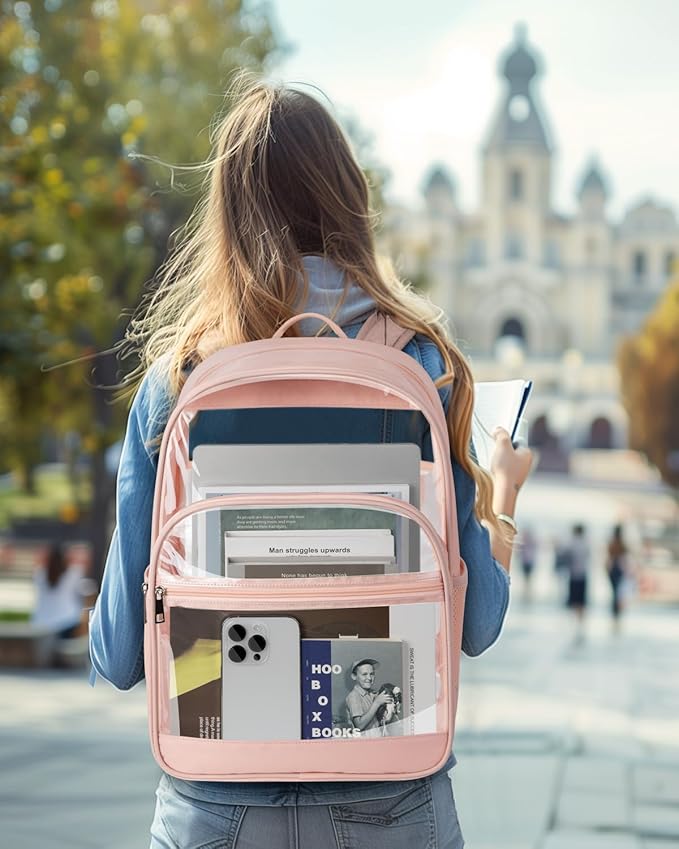 - Transparent and Convenient: The transparent backpack allows complete visibility all round. It could provide a quick check and easy access when passing through security. Moreover, it's convenient to double-check if there is any missing item before you leave.