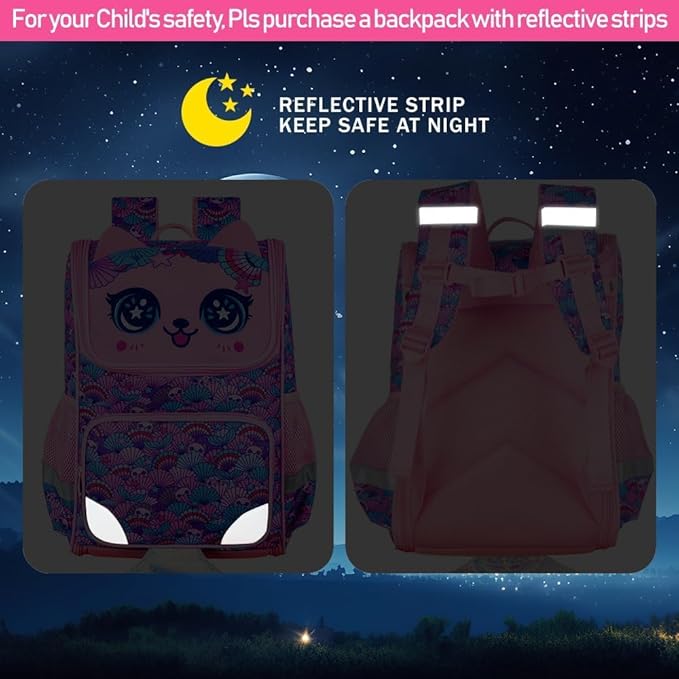 - Safety Configuration: This bookbag for girls is made of eco-friendly material, which is safe for your little girls use. Eye-catching reflective strip, increase the safety of her walking at night.