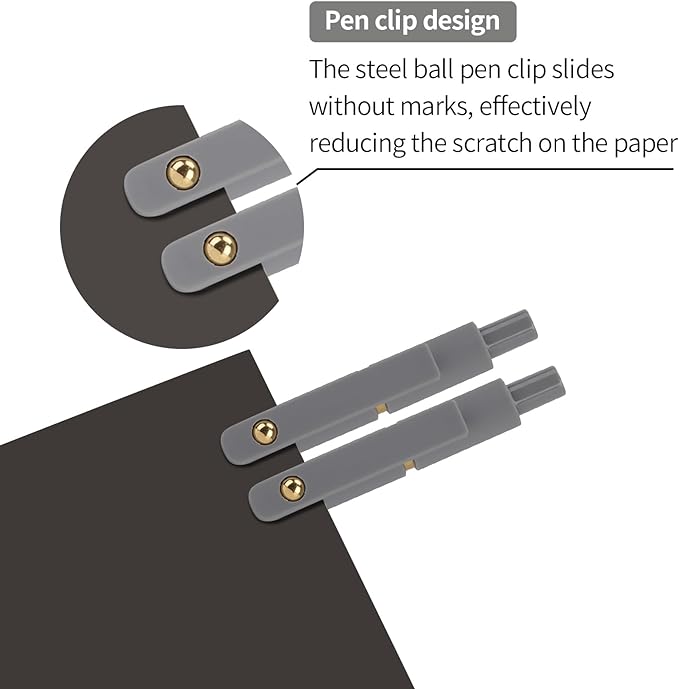 - Practical and Simple Design: The convenient clip design can firmly clip the neutral ink ballpoint pen to a book, notebook or bag, easy to carry, without worrying about losing; retractable design, gently press the cap, the pen end automatically retracts
