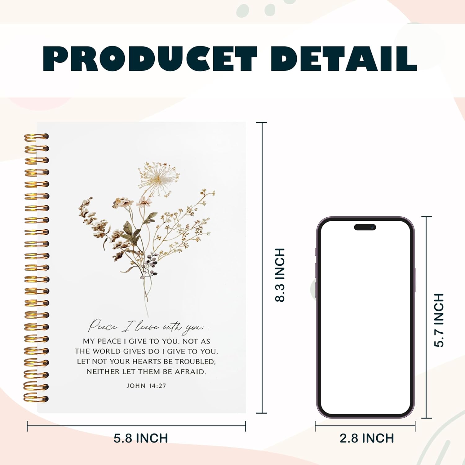 BearCake Peace I Leave with You Floral Christian Notebook Journal, Christian Gifts for Women, Bible Notebooks for Note Taking, Bible Journaling Notebook, Hardcover Spiral Notebook 5.5x8.3