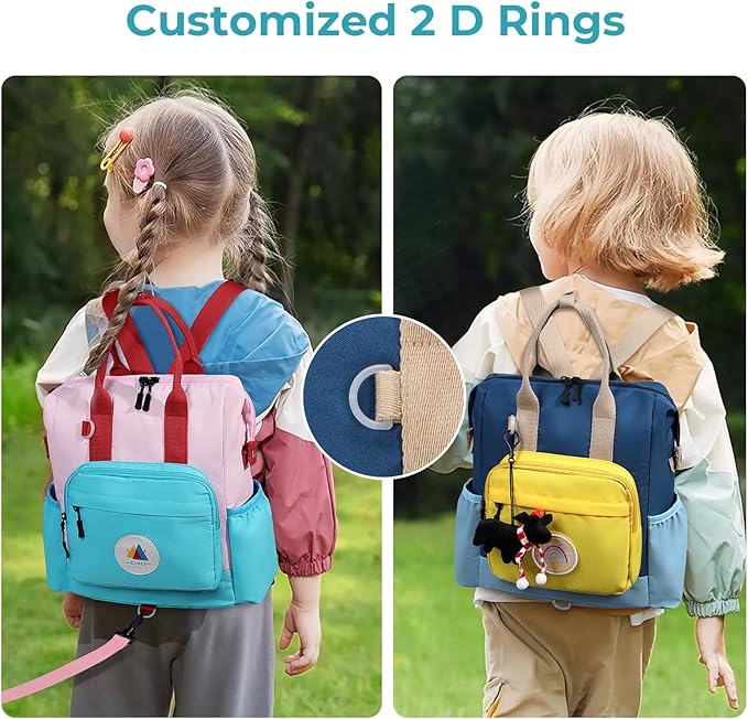 - Convenient D-rings: This travel backpack for toddler feature two D-rings sewn onto the front, which can be used to attach various items such as a child's leash or pencil case.