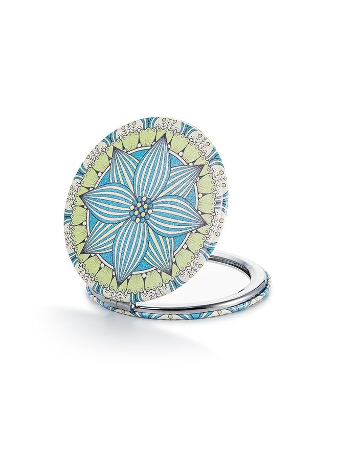 OMIRO 1X/10X Compact Magnifying Mirror, Unique Painting Pocket Mirror with Classical PU Leather (Round, Green Flower Mandala)