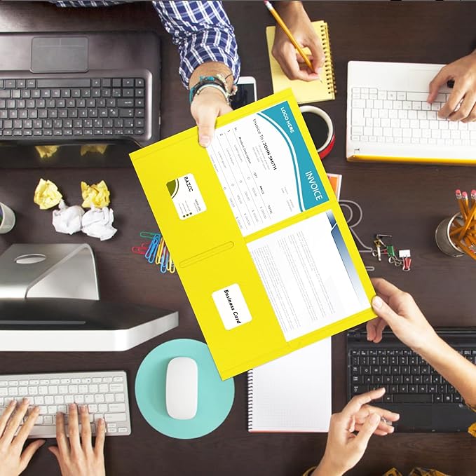 - TWO POCKET FOLDER SET: 50 Pack yellow paper folders with 2 inner pocket and 2 business card slots. Deep pocket design can provide secure storage space for papers, files or other important materials