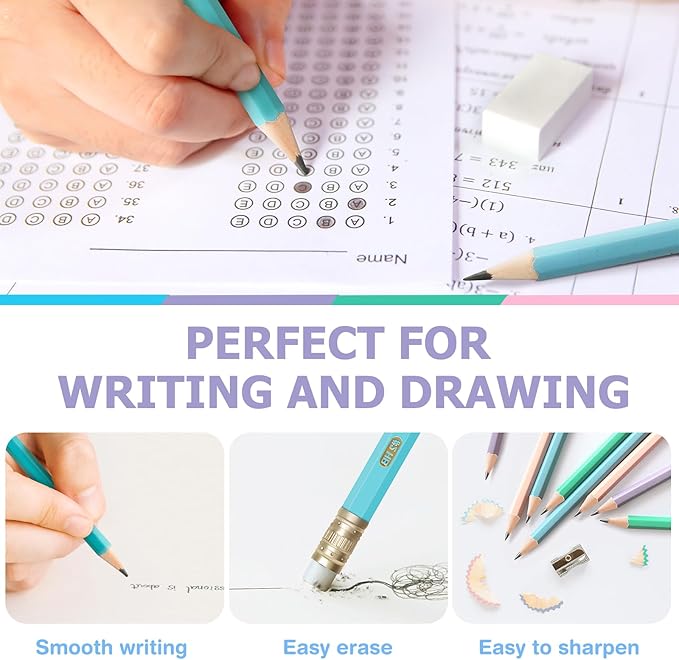 - Scientific Pencil Body Design - The body of the pencil is designed in a hexagonal shape, which can provide a safe and comfortable grip and prevent rolling. At the same time, the end of each pencil is equipped with a soft pink eraser for easy erasing, durable enough for you to erase pencil marks at any time.
