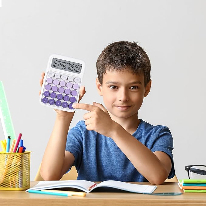 Mechanical Pushbutton Calculator,12 Digit Large LCD Display,Big Buttons Easy to Press,Colorful Candy Calculator,Automatic Sleep,with Battery.for Office,School, Home. (Violet)
