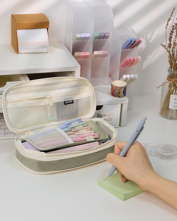 - 【Large capacity】 Pencil case size 8.66 x 4.13 x 2.56 inches with large capacity storage, can store up to up to 50 pens or 90 pencils, and can store small stationery in the mesh bag.