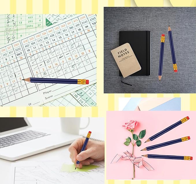 Adhere 25pcs Golf Pencils with eraser Hexagon Wooden Pencils Graphite 2B for Golf Event Scoring,Classroom,Wedding,Company Meetings,Pew, Pocket (Navy Blue)