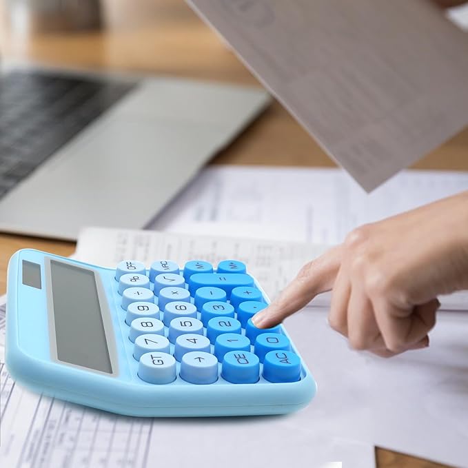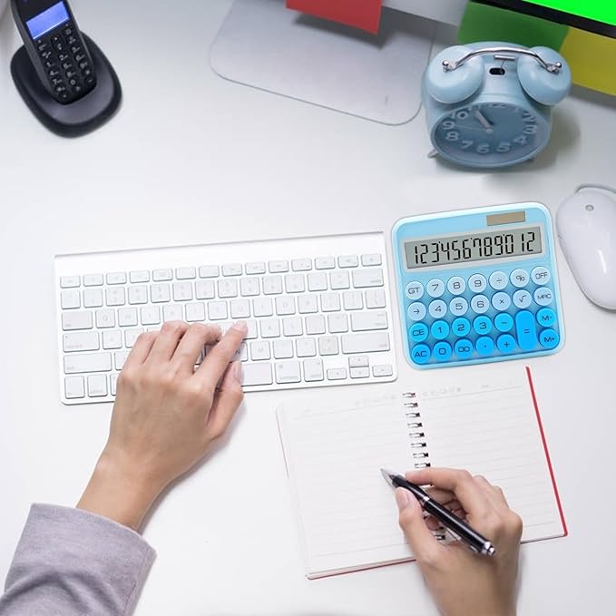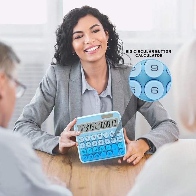 - Imitation Mechanical Keyboard Design - Our cute calculator make with large LCD display ,12-digit display.The big buttons imitating the knocking feel of a mechanical keyboard.Your calculation process will be faster and smoother with this calculator’s responsive buttons.