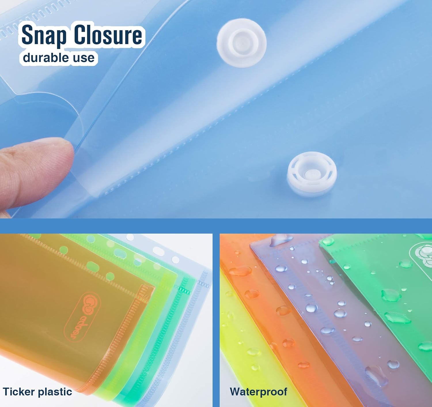 ABSOFINE 24 Pack Plastic Envelope Document Folders with Label Pocket and Snap Button for Home Work Office Organization, A4 Letter Size, Binder Pocket Folders for 11 Ring Binder, Assorted Colors