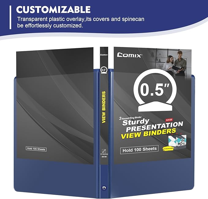 COMIX 3 Ring Binder 1/2 inch with Clear View Cover, 0.5" View Binder Holds 100 Sheets of US Letter Size Paper, 6 Pack (Dark Blue)