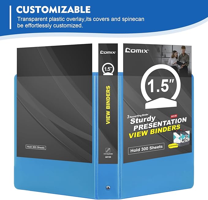 - Customizable:View binder with a Clear View poly overlay allows you to customize the spine and both covers.