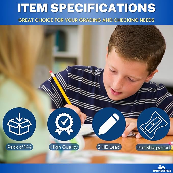 1InTheOffice Pre Sharpened Pencils #2, Pencils with Eraser, 2 HB, Wood-Cased, Black Lead, Yellow Barrel (144)