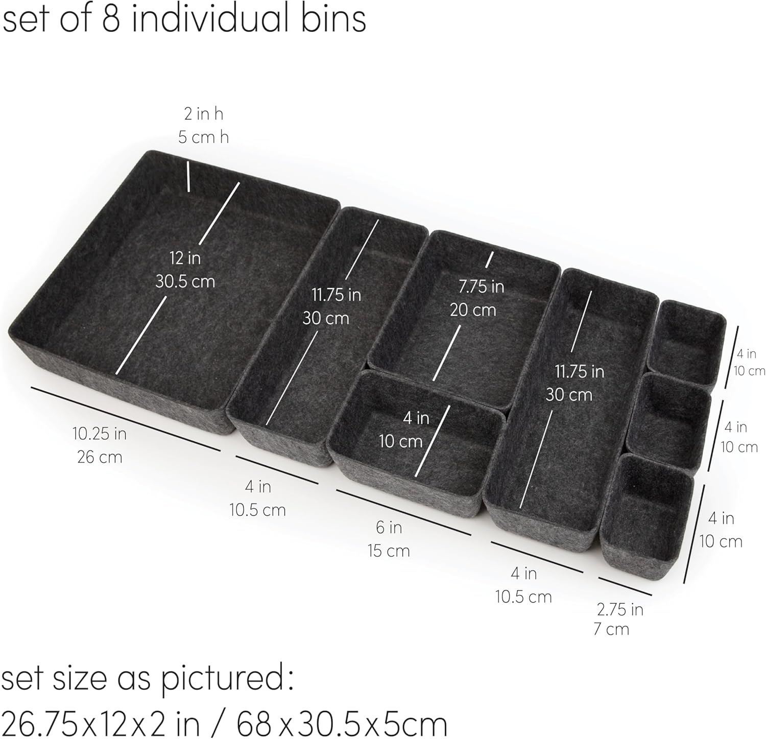 Three by Three Seattle Felt·Like·It! Felt Bins for Office, Crafts, Classroom, Living Room, Bedroom: Charcoal, Set of 8