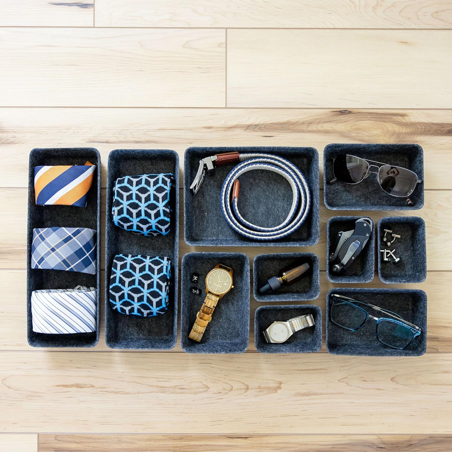 Three by Three Seattle Felt·Like·It! Felt Bins for Office, Crafts, Classroom, Living Room, Bedroom: Charcoal, Set of 10