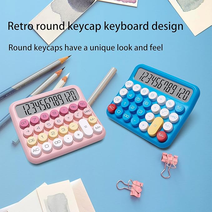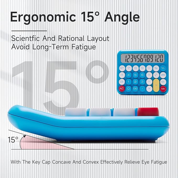 - IMITATION MECHANICAL KEYBOARD: Imitating the knocking feel of a mechanical keyboard (the keyboard cannot be disassembled without special tools), the key operation is fast and accurate, bringing a pleasant experience.. The touch of your fingers and the unique clicking sound are addictive.Large button, candy color.Large LCD screen,12-digit display, vertical back,15-degree angle for easy-to-read calculator