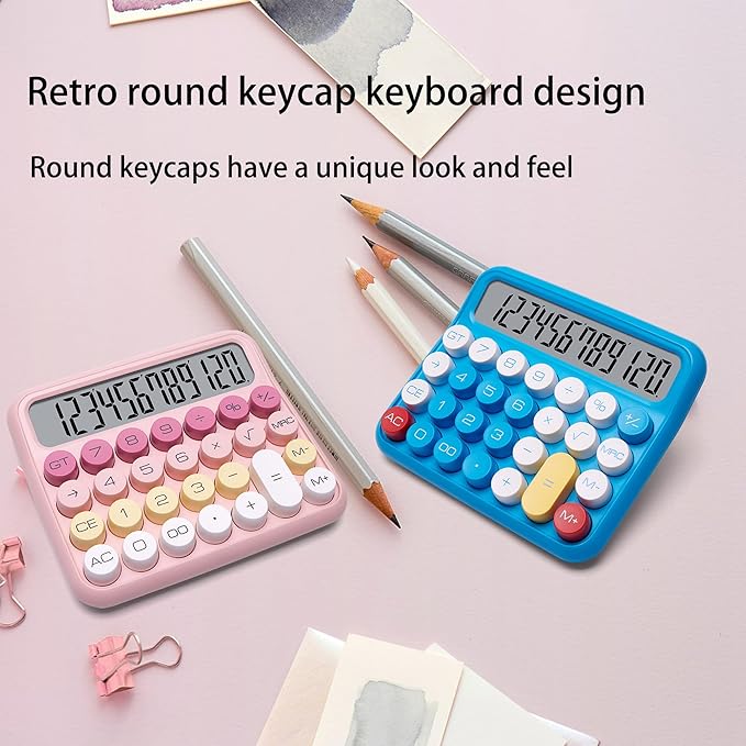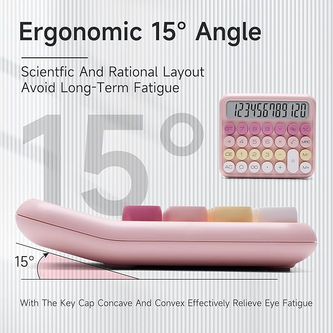 - IMITATION MECHANICAL KEYBOARD: Imitating the knocking feel of a mechanical keyboard (the keyboard cannot be disassembled without special tools), the key operation is fast and accurate, bringing a pleasant experience.. The touch of your fingers and the unique clicking sound are addictive.Large button, candy color.Large LCD screen,12-digit display, vertical back,15-degree angle for easy-to-read calculator