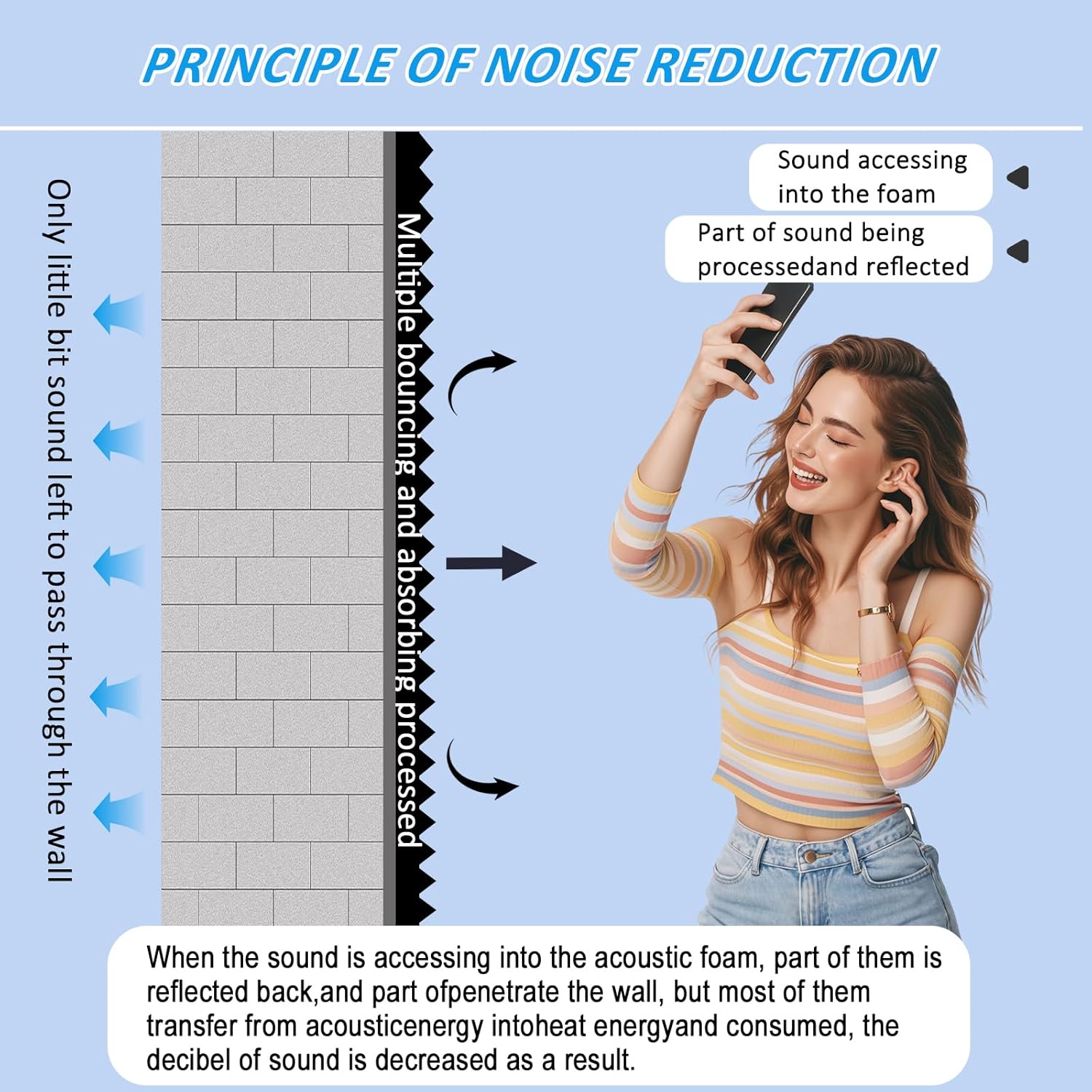 - Excellent Sound Absorption - Made of 48 x 24 x 2 inches egg crate foam, each package contains 1 acoustic foam panels These panels increase the contact area of more sound waves, better sound absorption, can effectively absorb and reduce unwanted echoes and noises in the surrounding area, so that the other sounds are more clearer