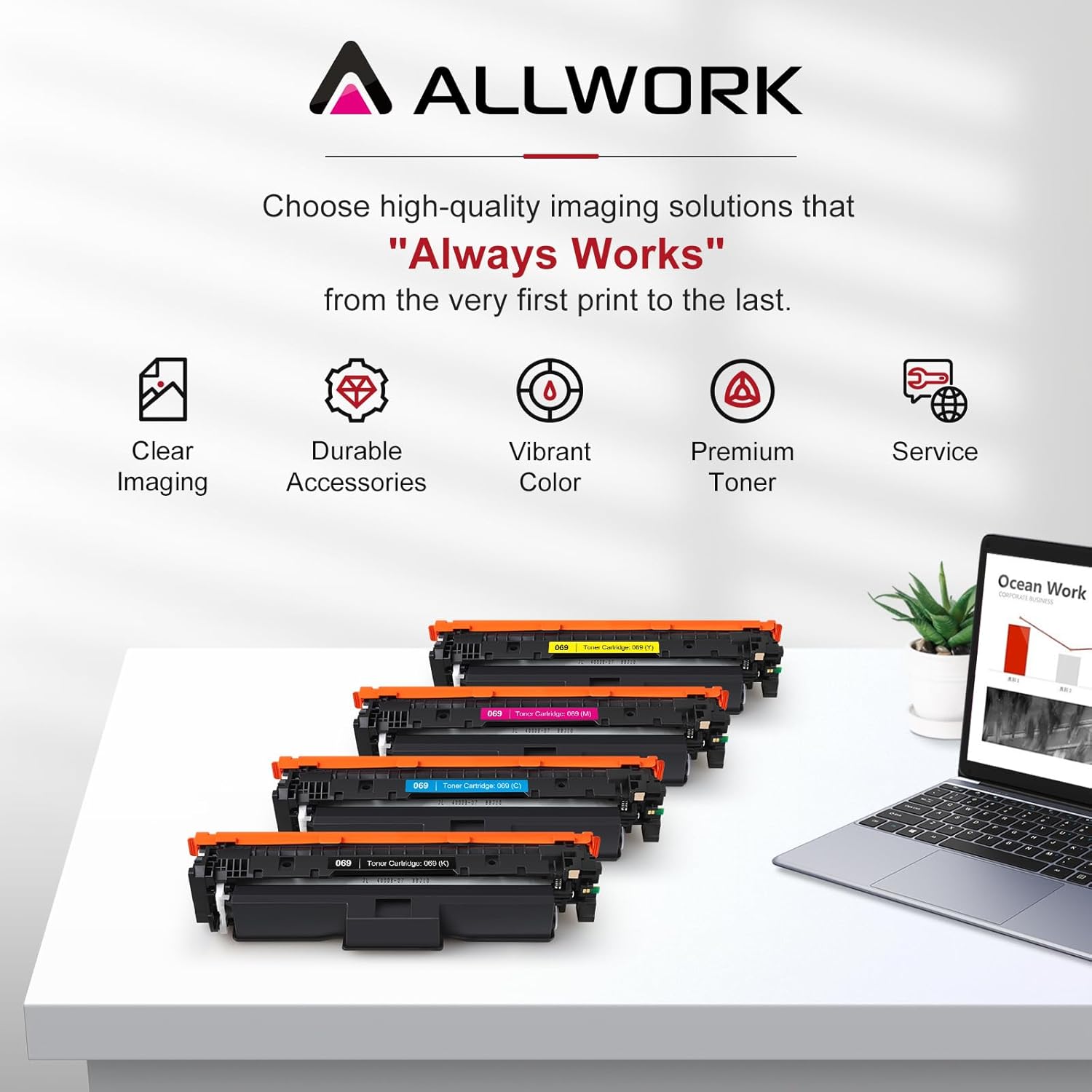 - With Advanced Patented Chip: ALLWORK 069 toners feature the latest advanced patented chip, ensuring easy printer recognition.