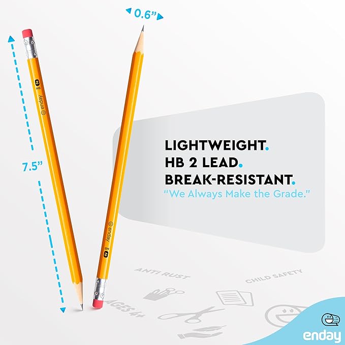 Enday #2 Pencils Bulk - 144 Pack - Pre-sharpened pencils #2 Wood-Cased Yellow Sharpened Pencils for Kids with Latex-Free Eraser Top for Office and Classroom Supplies.