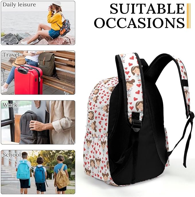 - ♥[Joyidec Cute Backpack] -- This kawaii Cartoon Nurses Hearts printed kids backpack for girls and boys is perfect for all ages, the fun cute and handsome pattern always attracts attention and work backpack for women can be a great wearable matching piece